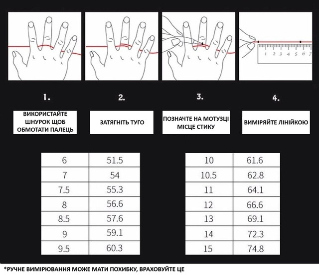 Рекомендація по розміру - бажано виміряти розмір в зручній точці з продажу виробів.